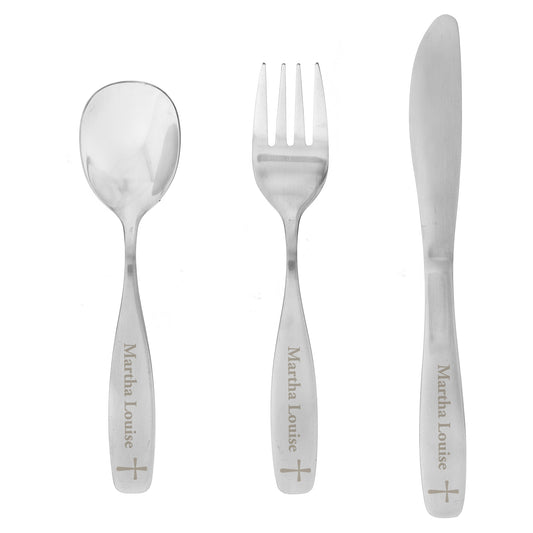 Personalised 3 Piece Swirls & Hearts Cutlery Set