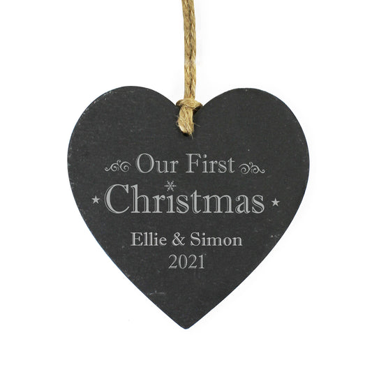 Personalised Our First Christmas Slate Heart Decoration