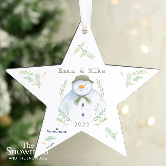 Personalised The Snowman Winter Garden Wooden Star Decoration
