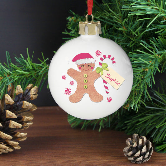 Personalised Felt Stitch Gingerbread Man Ceramic Star Decoration