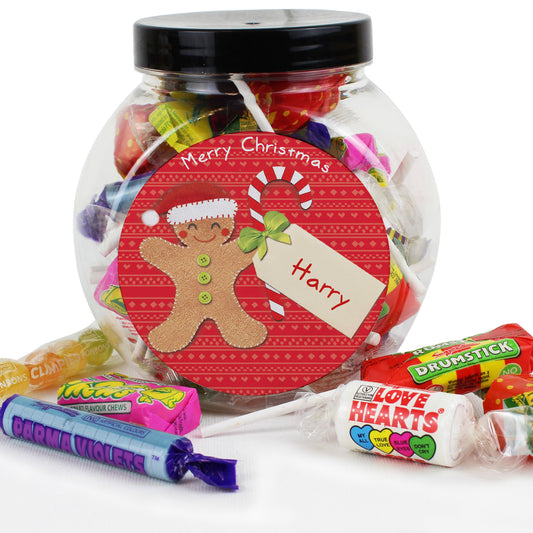 Personalised Felt Stitch Gingerbread Man Sweet Jar