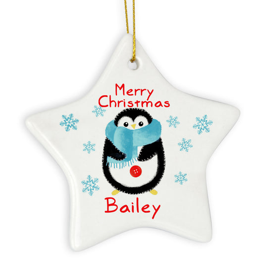 Personalised Felt Stitch Penguin Ceramic Star Decoration
