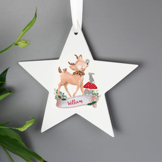 Personalised Festive Fawn Wooden Star Decoration