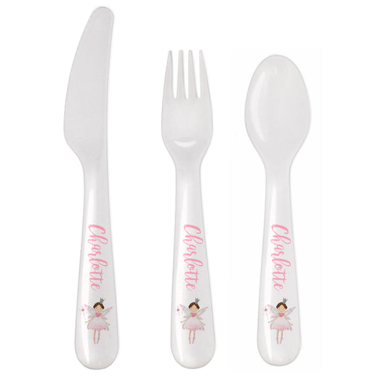 Personalised Fairy Princess 3 Piece Plastic Cutlery Set