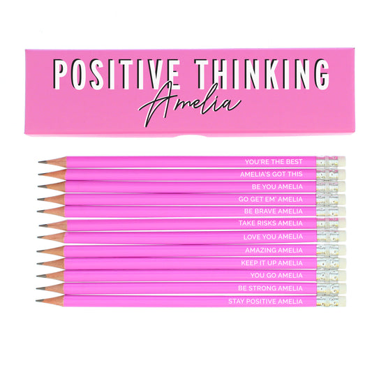 Personalised Positive Thinking Box and 12 Pink HB Pencils