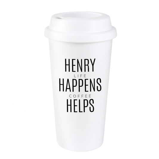 Personalised Black Text Slogan Insulated Reusable Eco Travel Cup