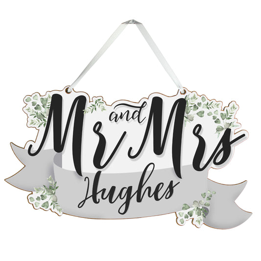 Personalised Mr & Mrs Wooden Hanging Decoration