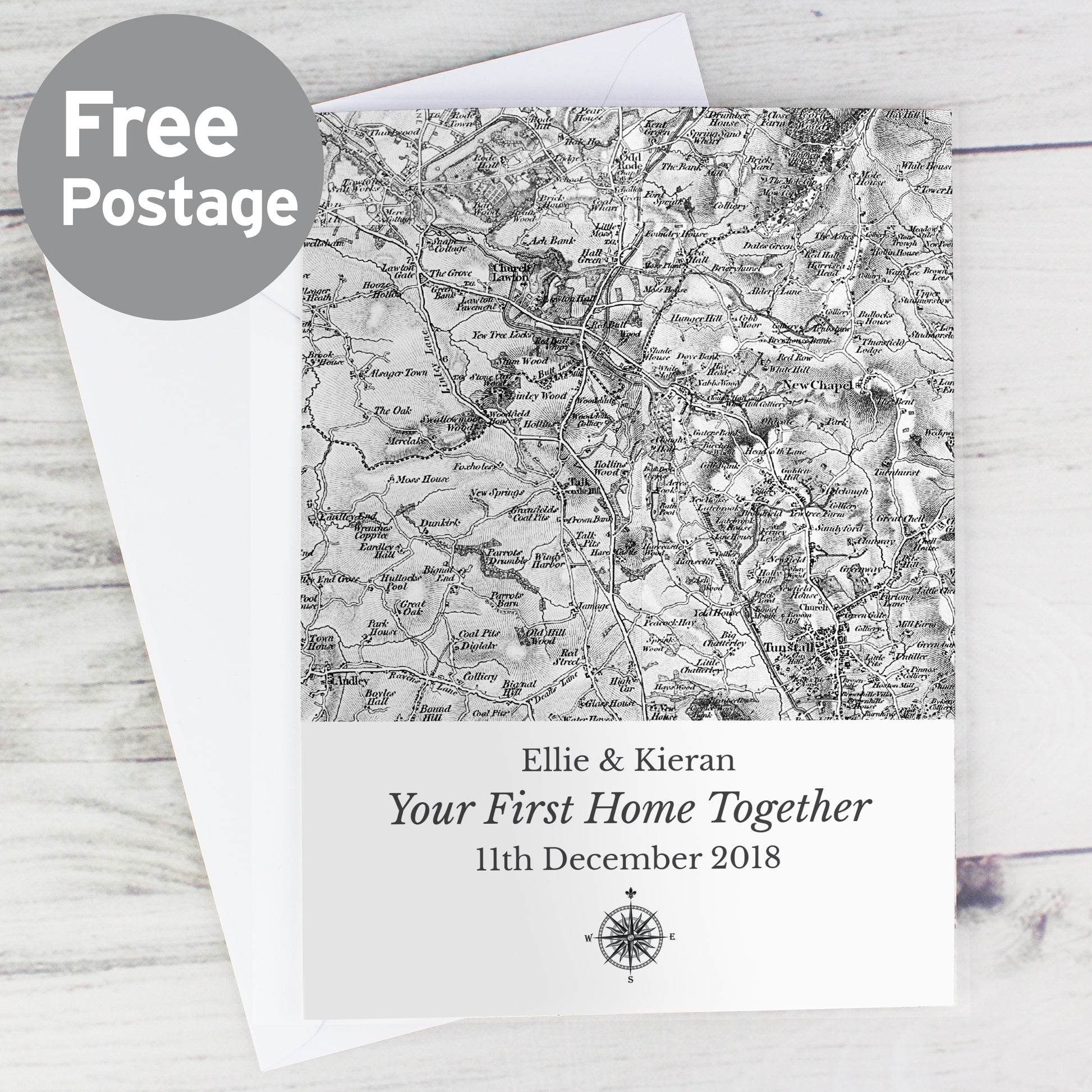 Personalise this 1805 - 1874 Old Series Map Card with any UK postcode* and a message of up to 3 lines, 25 characters per line on the front. Inside add a message of up to 5 lines of 25 characters per line.