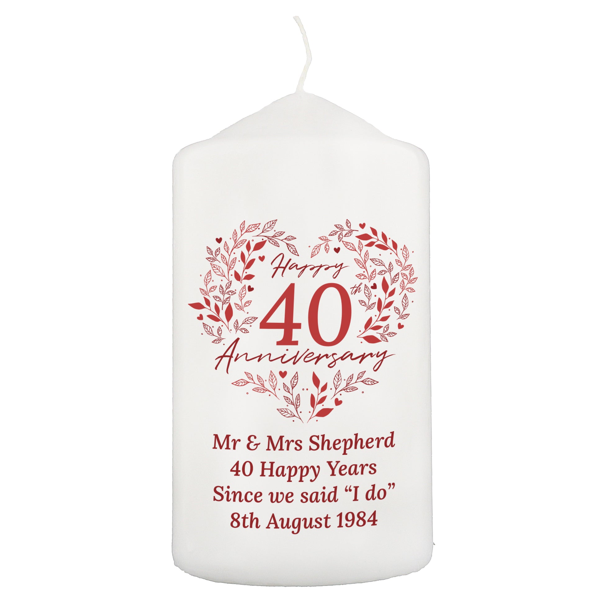 Personalised 40th Ruby Wedding Anniversary Pillar Candle