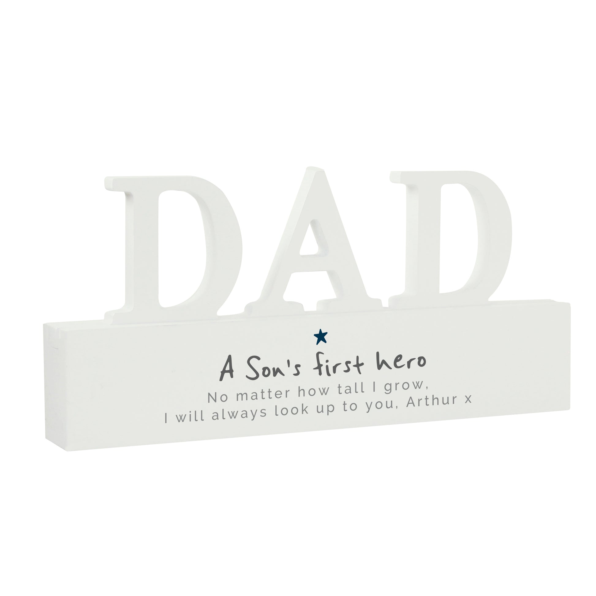 This Personalised A Son's First Hero Wooden Dad Ornament make a great gift to show Dad how much he means to you!