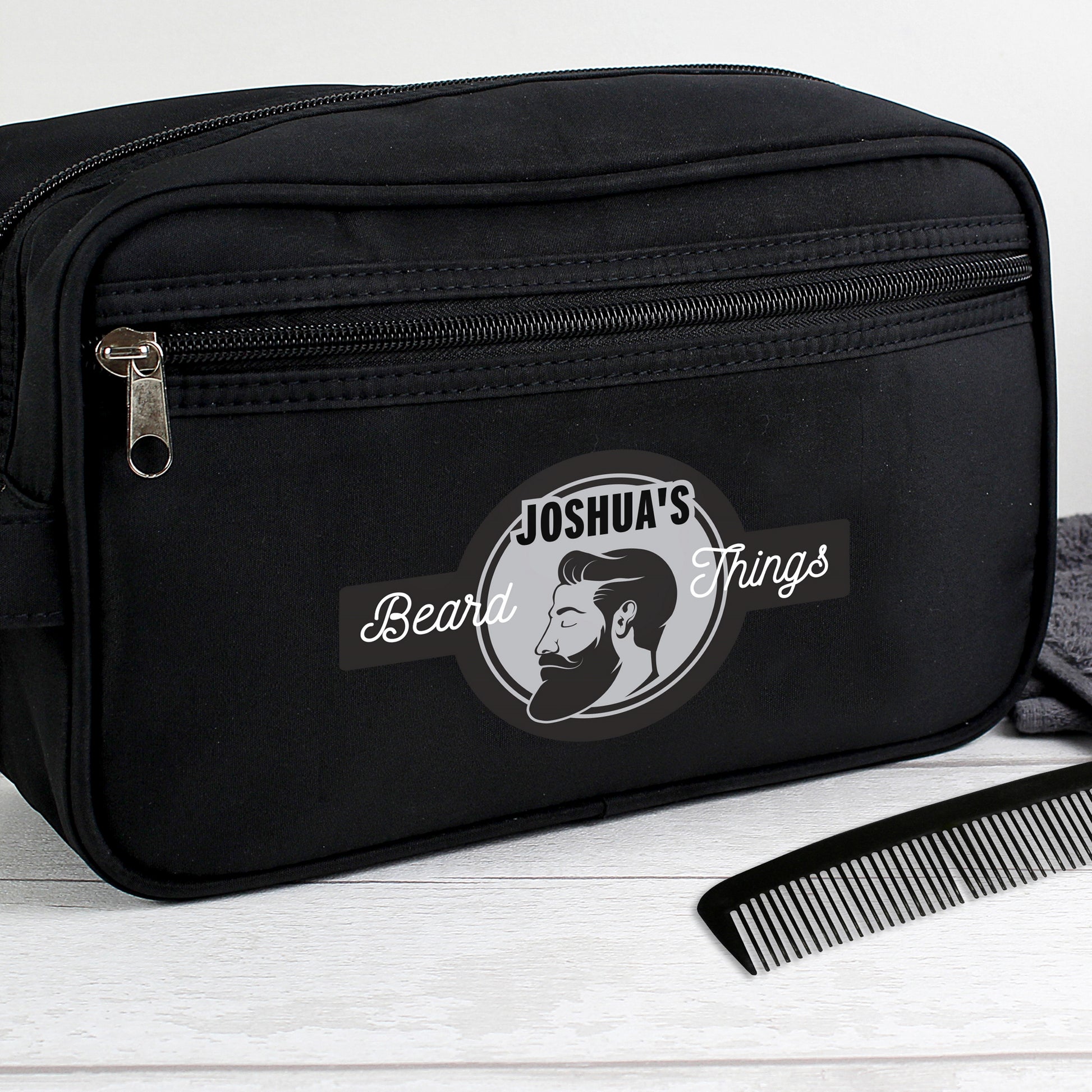 This Personalised Beard Things Black Wash Bag is perfect for storing a variety of beard-related products!