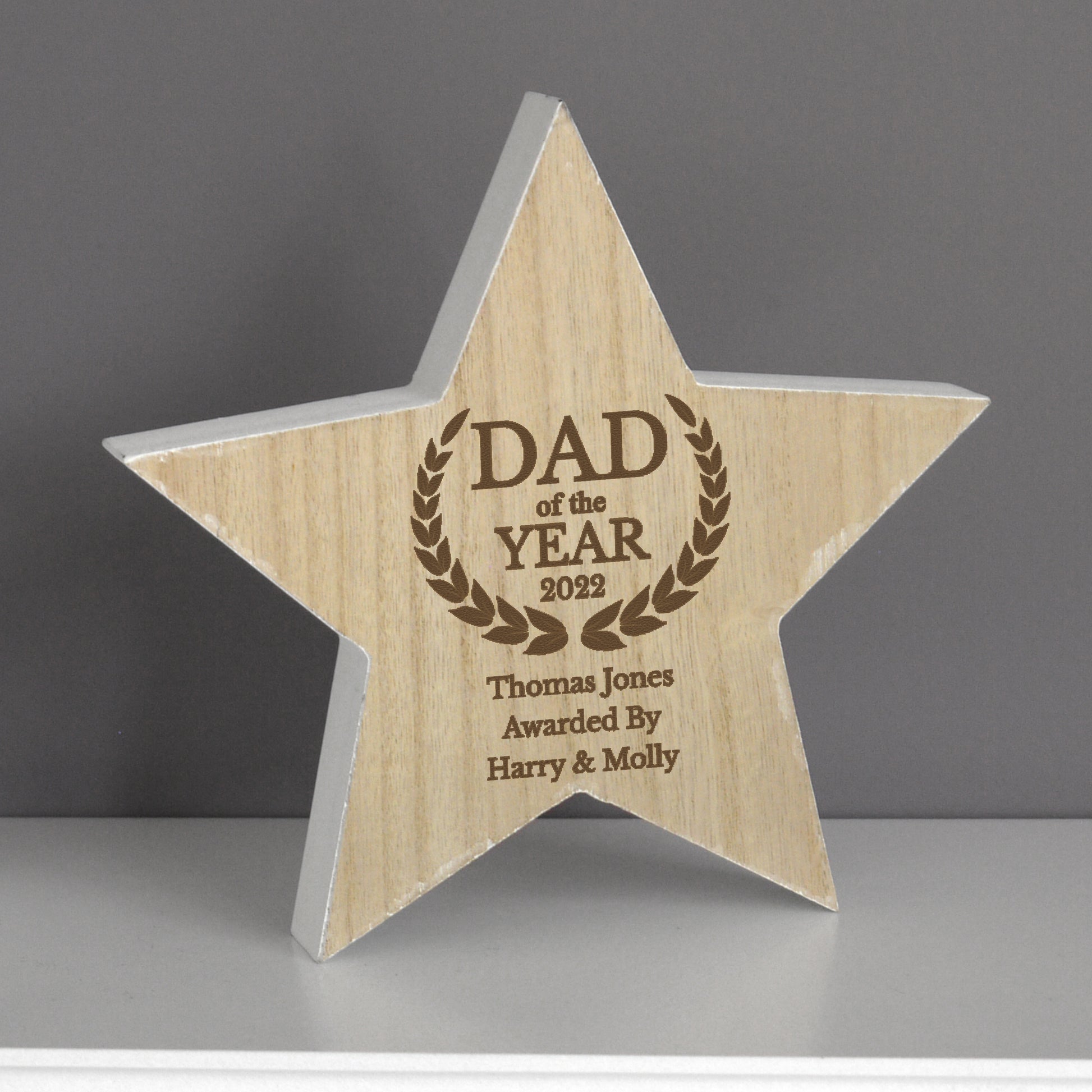 Personalised Dad of the Year Rustic Wooden Star Decoration