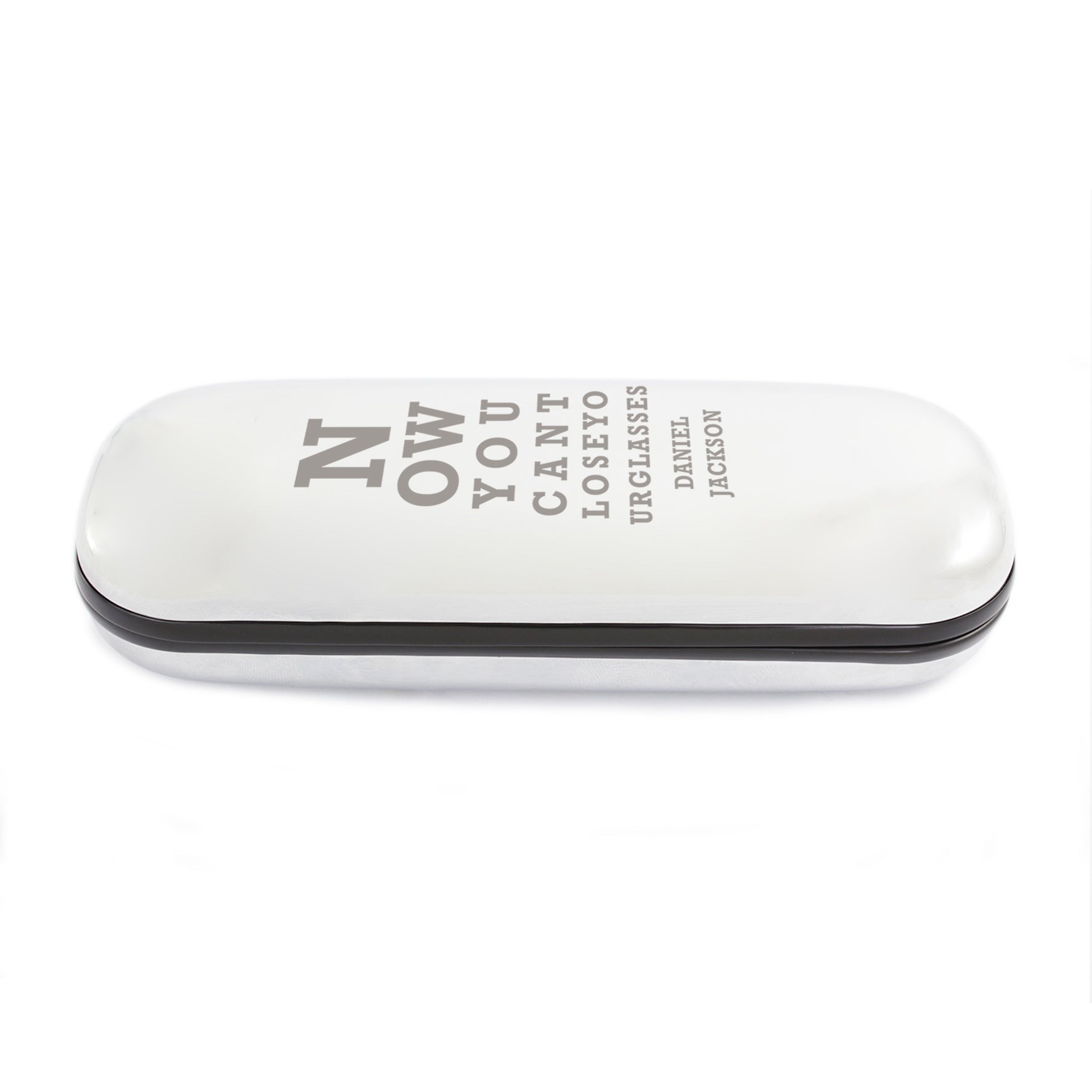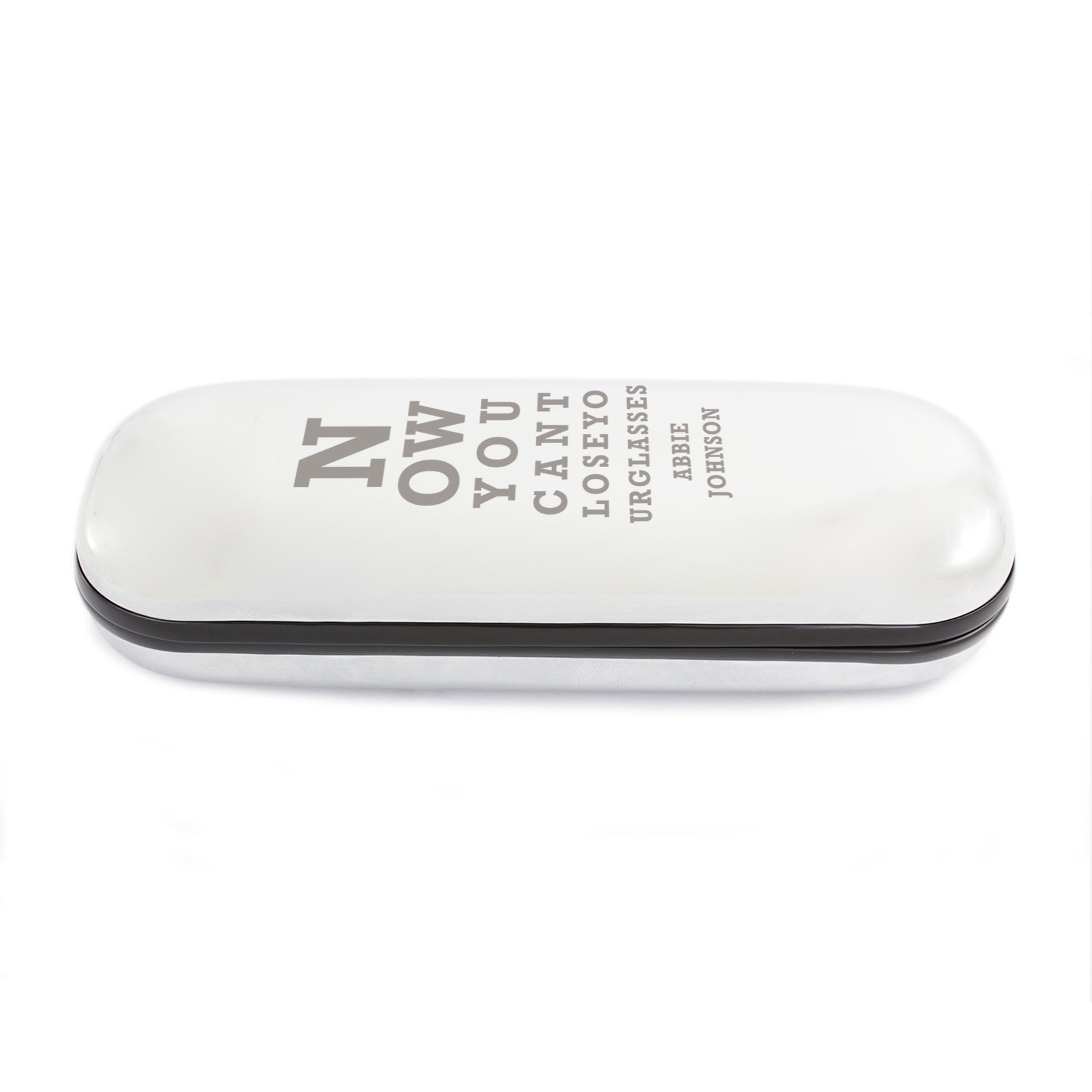 This glasses case can be personalised with 2 lines of text, with up to 12 characters per line.