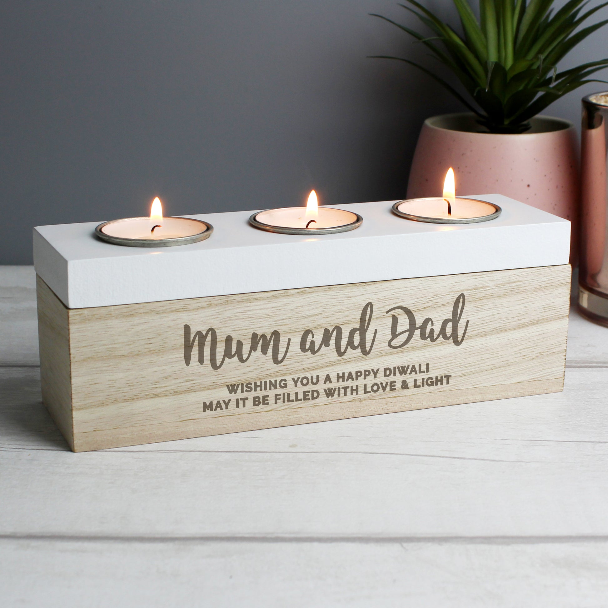 The lid on the box can hold 3 tea lights. The box is made from wood. The lid is hand-finished.