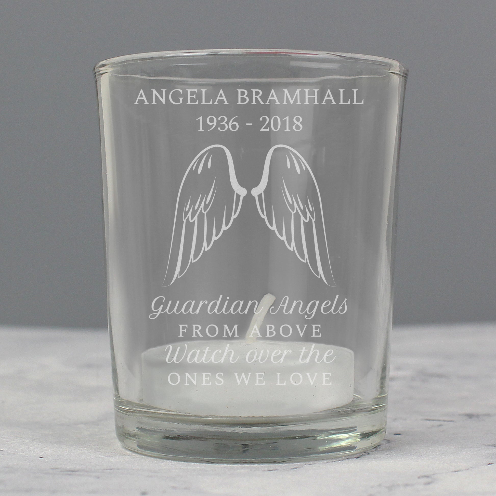 This Personalised Angel Wings Votive Candle Holder is a beautiful way to remember a loved one.