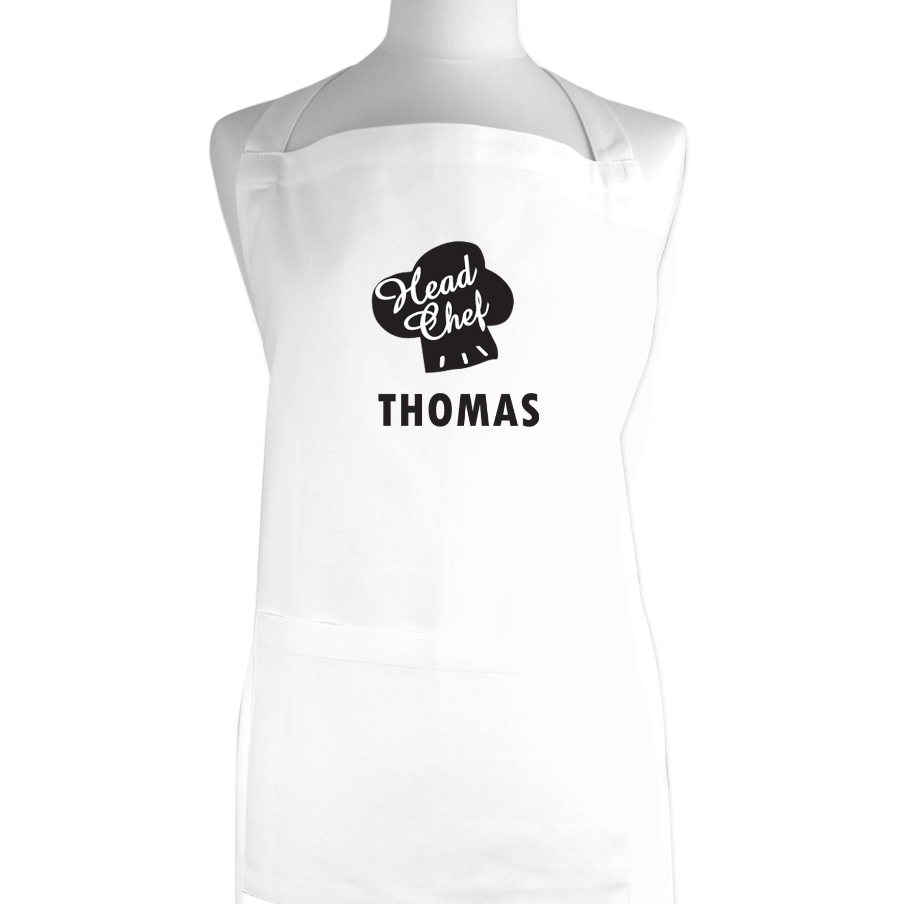 You can personalise this apron with a name up to 15 characters long. The words "Head Chef" are fixed. All Personalisation entered will appear in UPPERCASE.