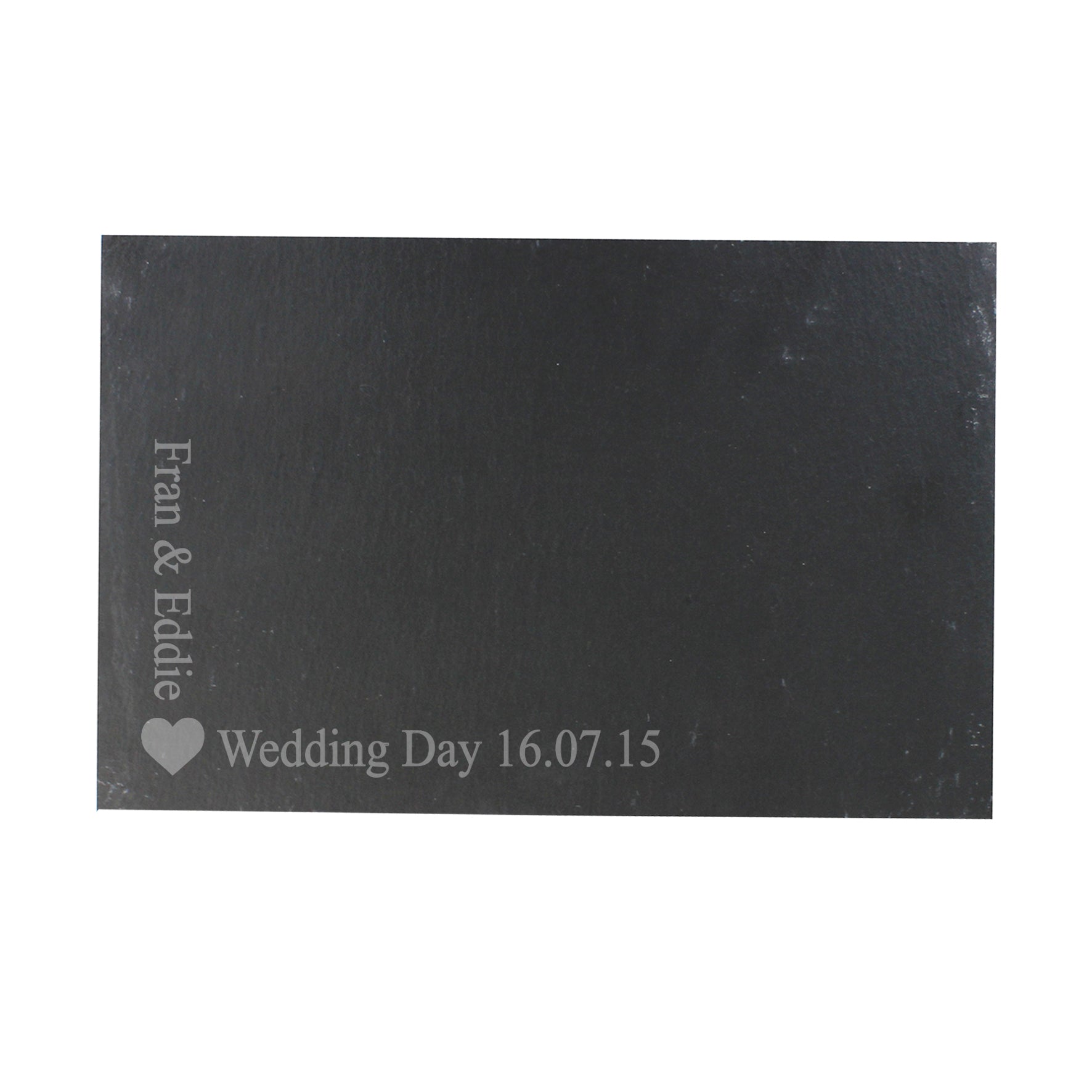 Personalise this Heart Motif Slate Board with two lines of 25 characters, in the corner of the product. This item has a cute heart motif and will be perfect used as a Cheese Board.