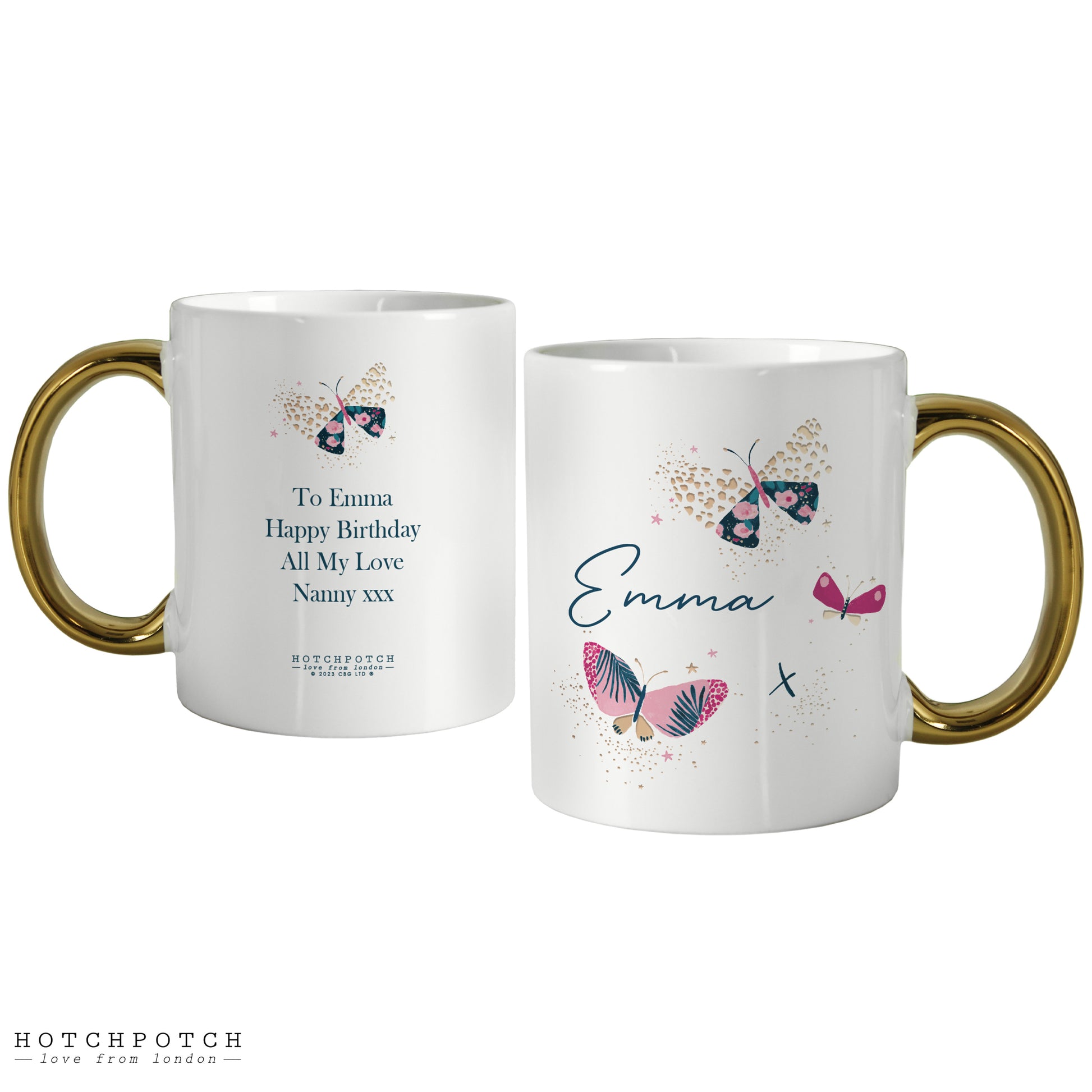 Personalised Hotchpotch Butterfly Gold Handle Mug