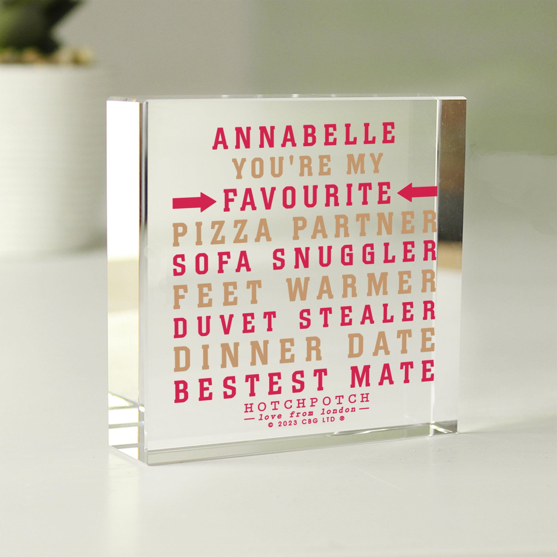 This stunning personalised Hotchpotch My Favourite crystal token is a great way of sharing a treasured sentiment with a loved one.