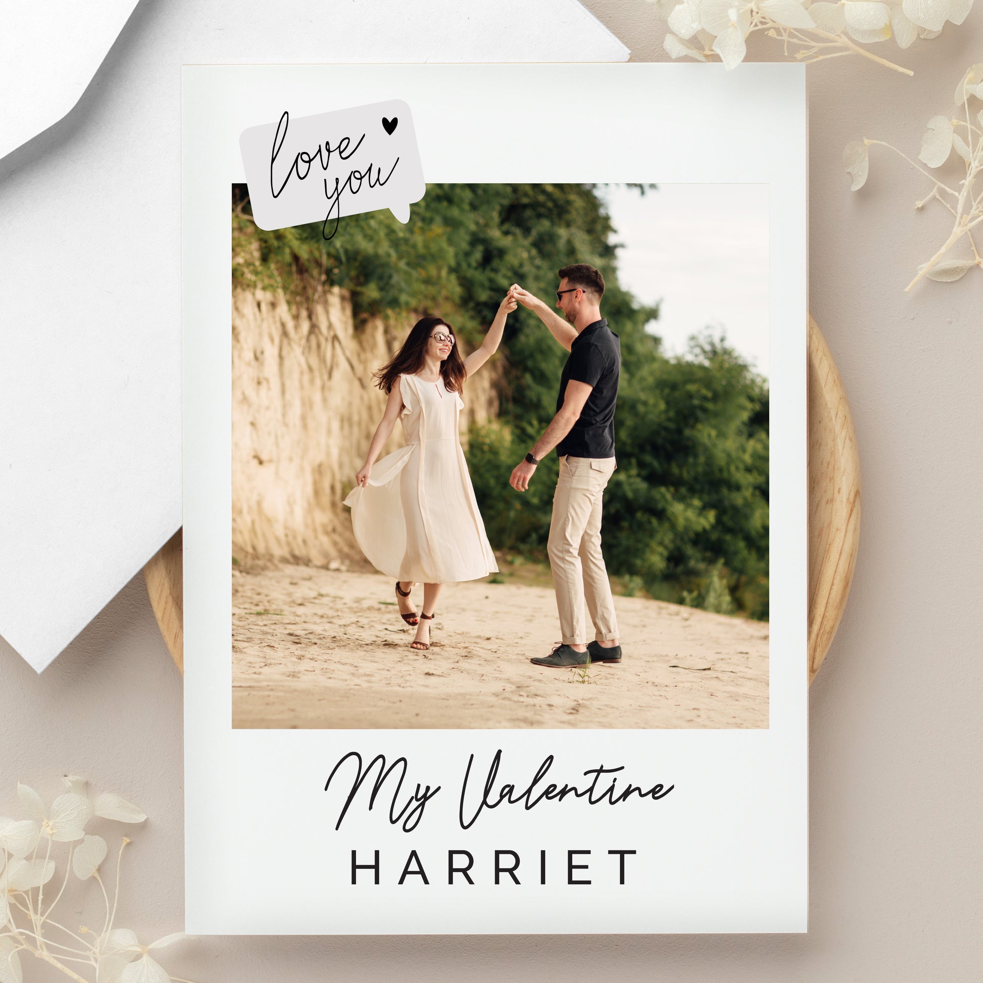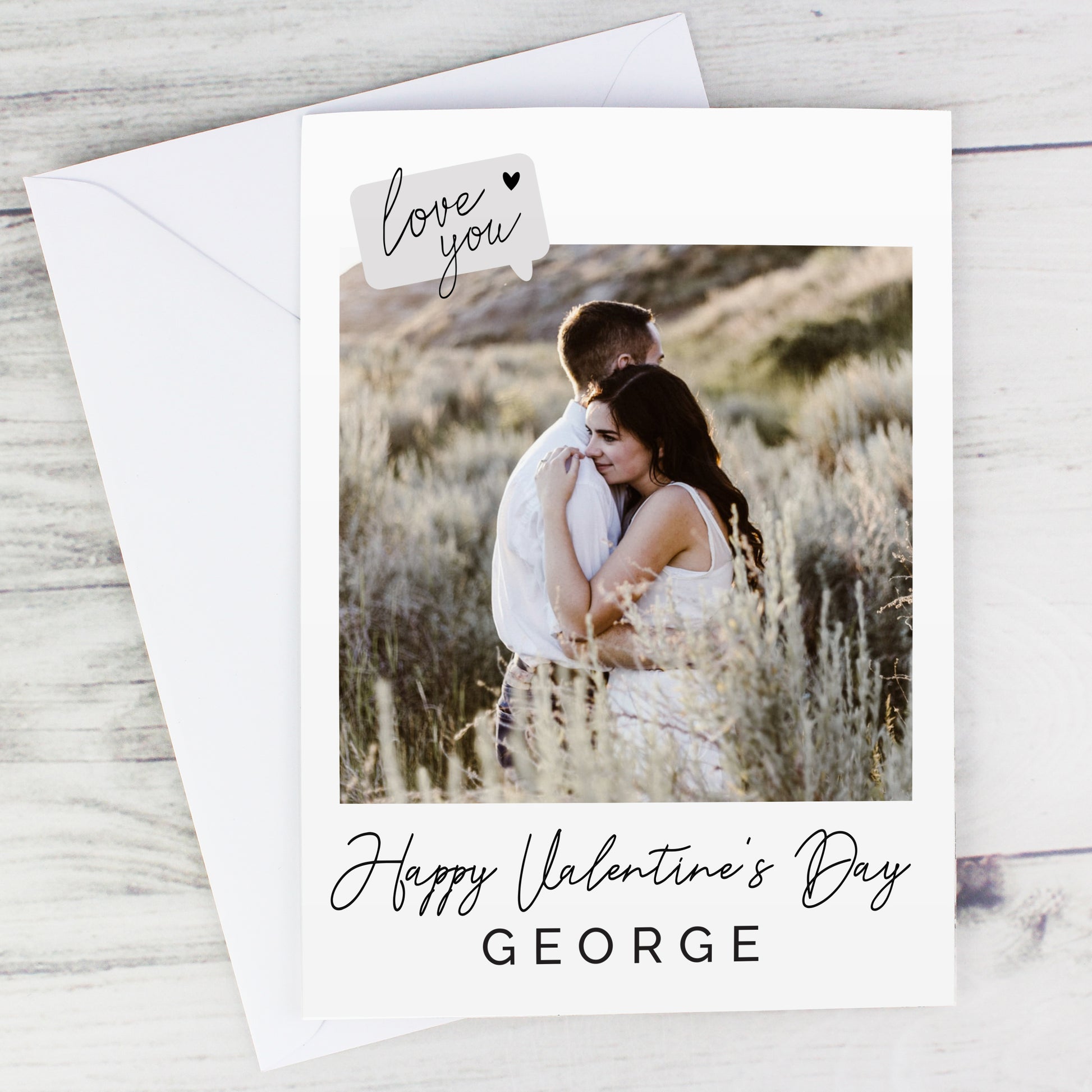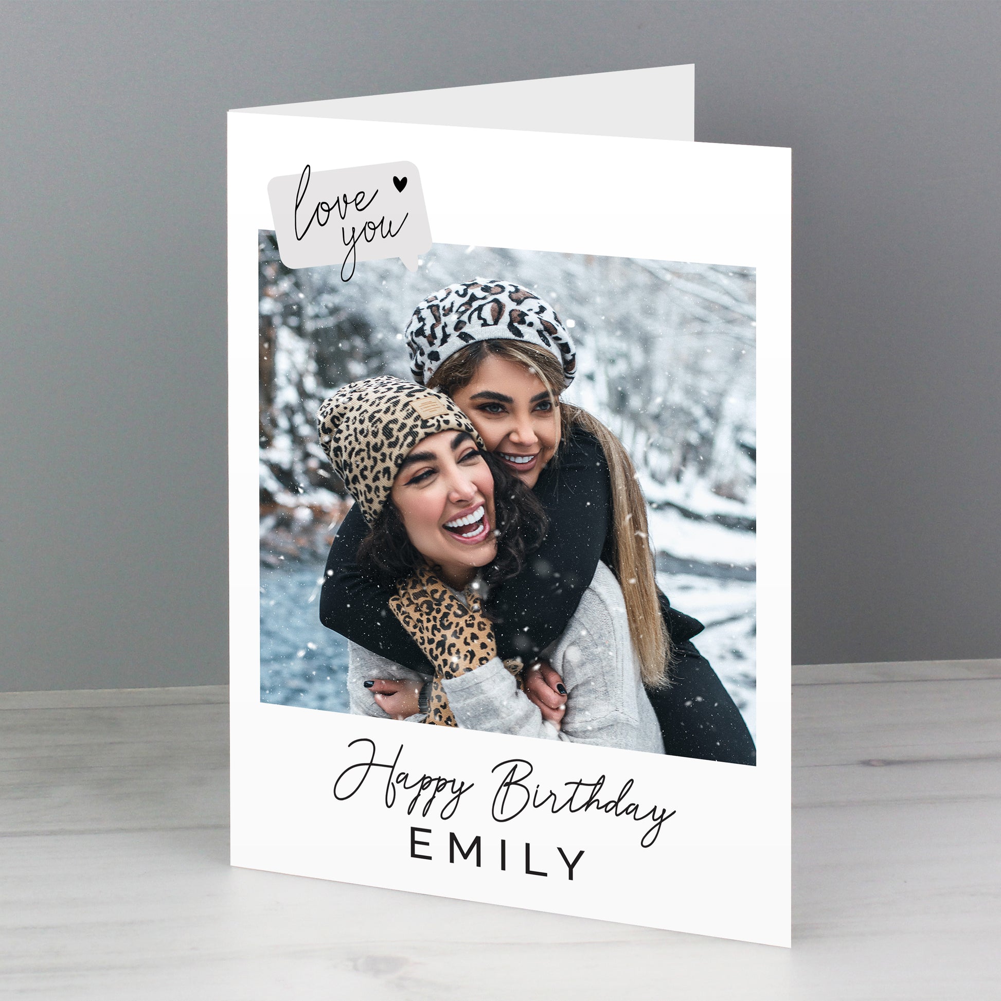 This cute card features a chic and simple design with the text 'love you' in a speech bubble to the top left of the photo.