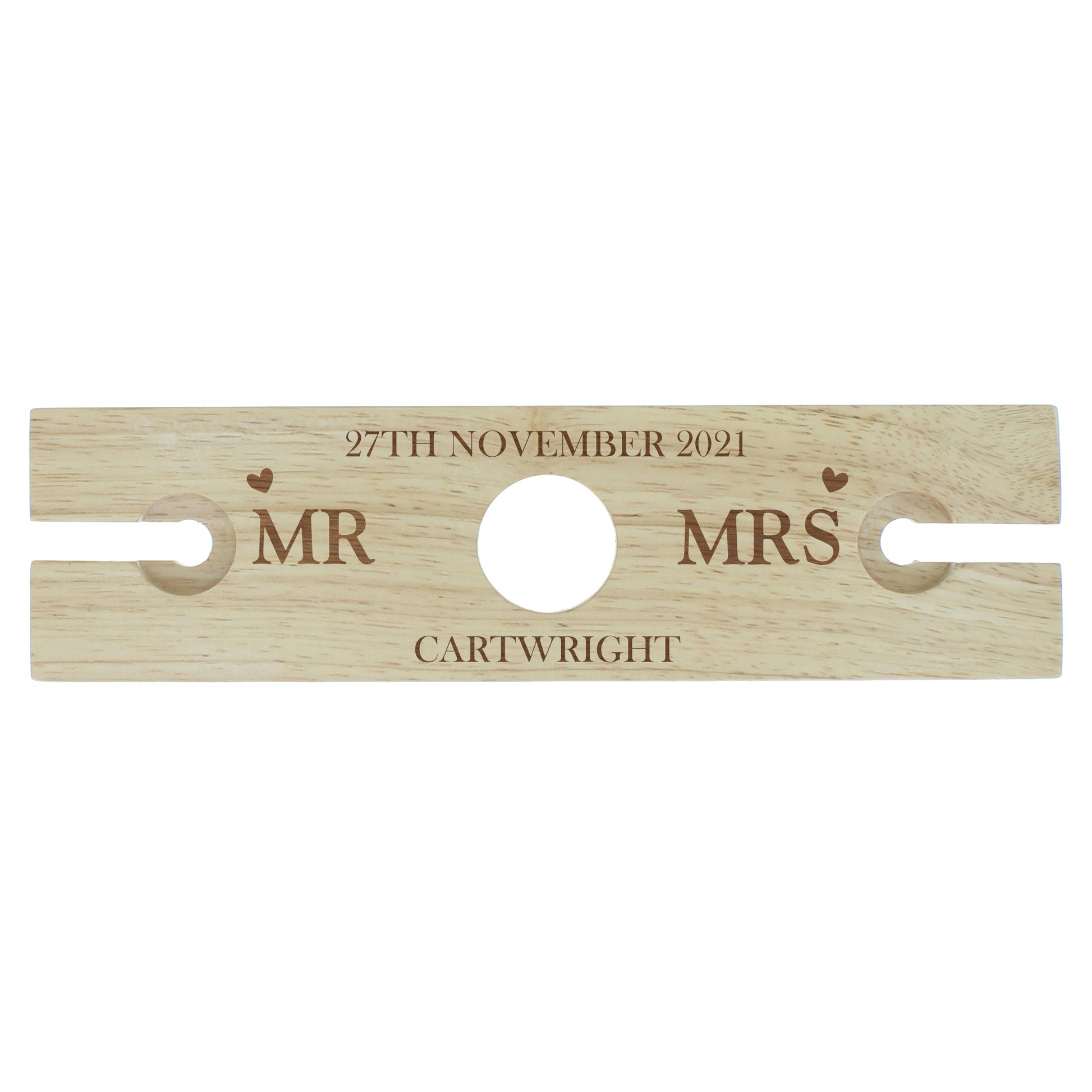 Celebrate your marriage with a drink beautifully presented by our Personalised Glass & Bottle butler. Perfect for placing on the top table for your first drink as a married couple.