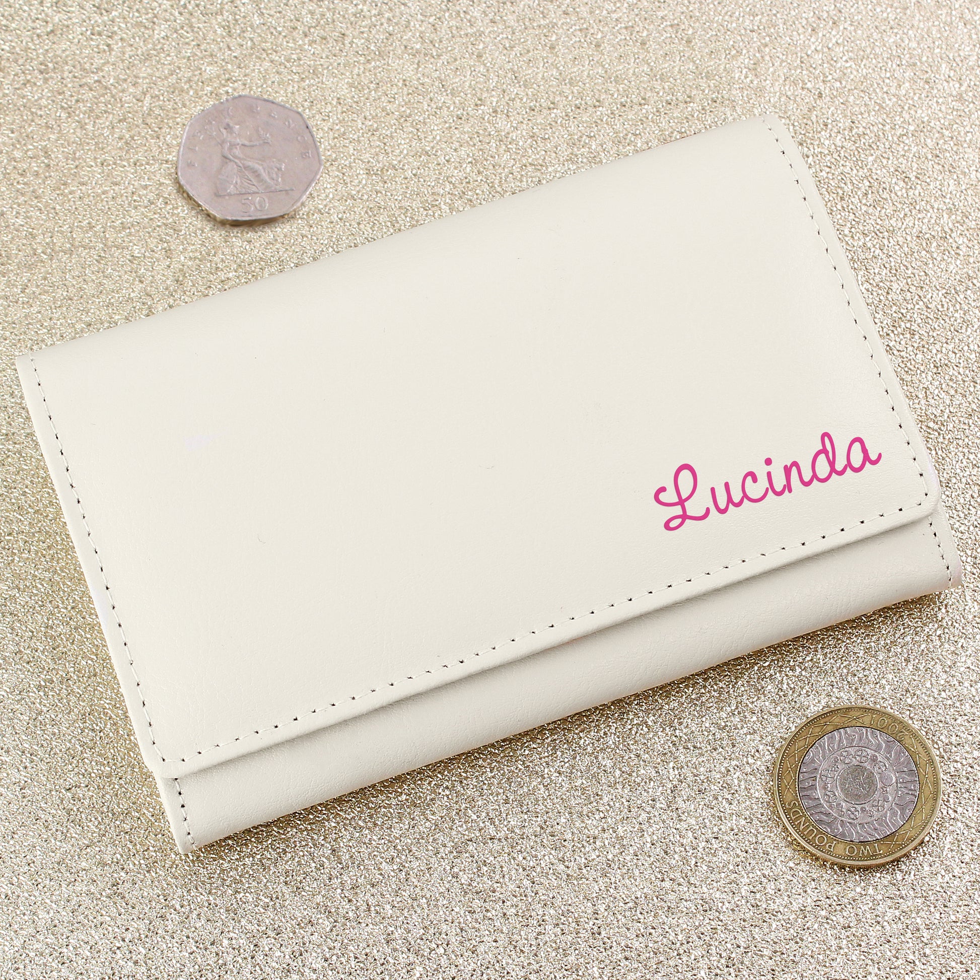 This personalised cream purse is stylish and sophisticated gift for her on any occasion.