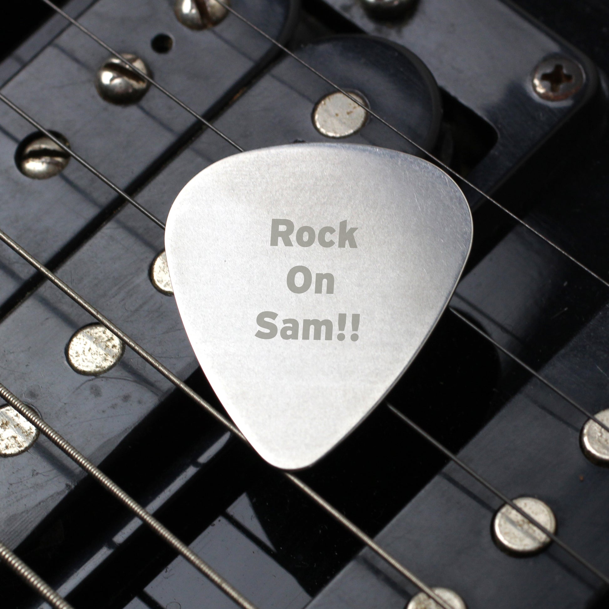 This stainless steel guitar pick is the perfect gift for any avid musician!
