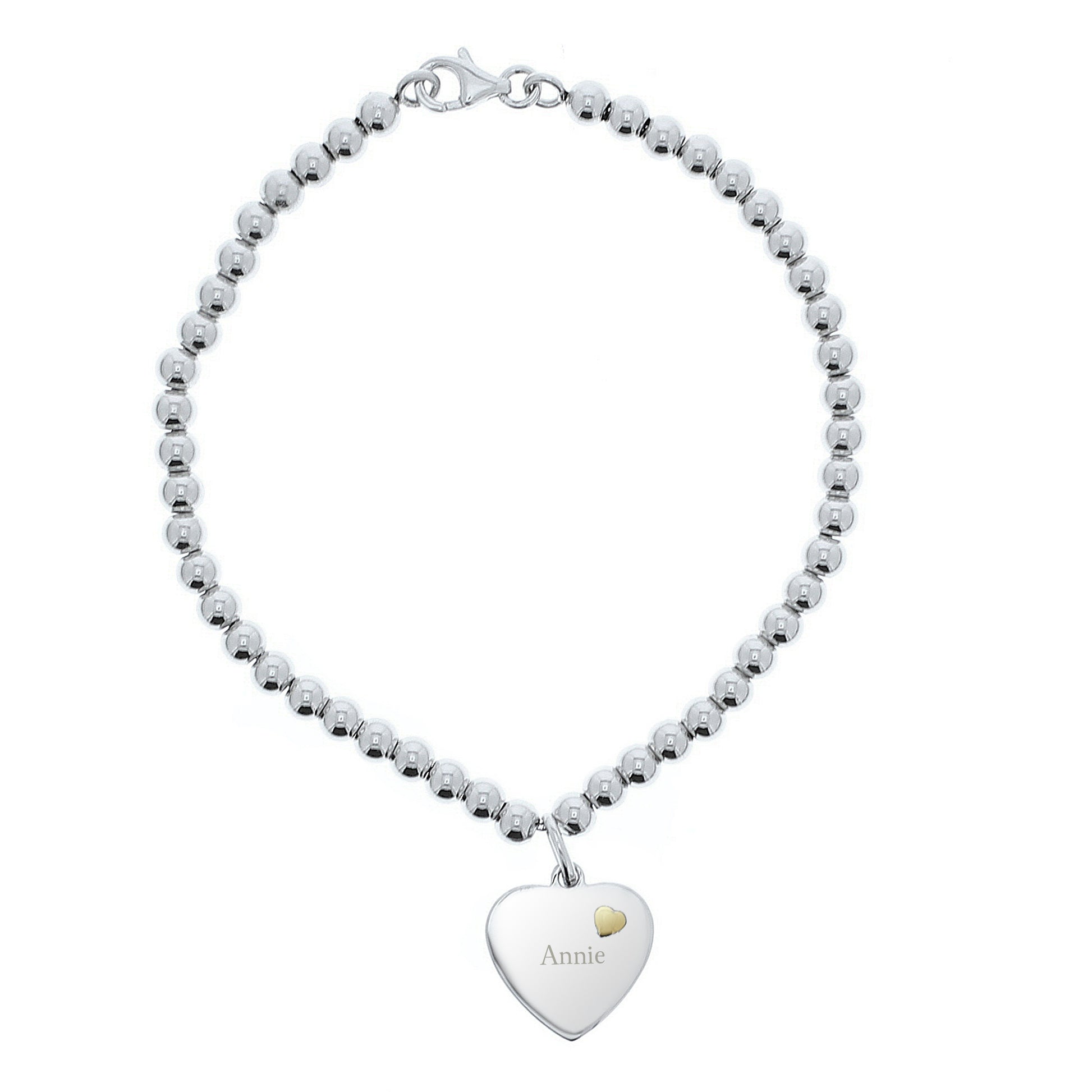 Personalised Sterling Silver and 9ct Gold Heart Bracelet