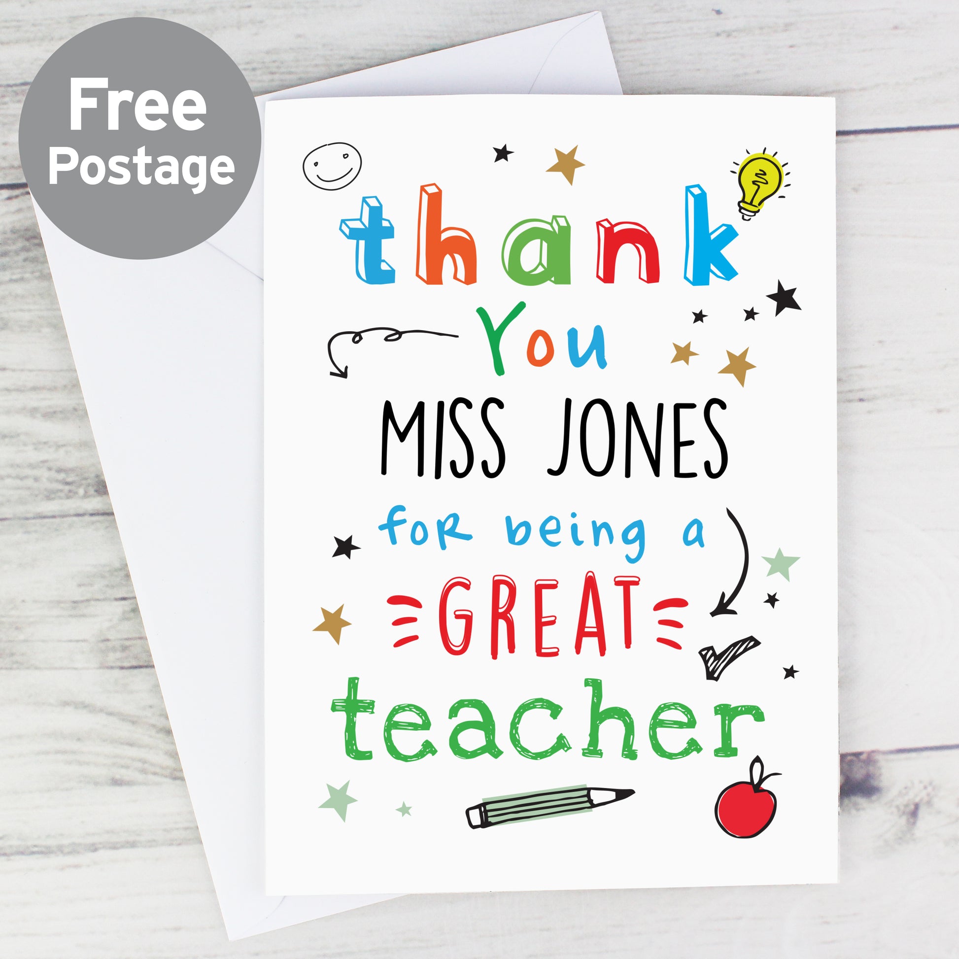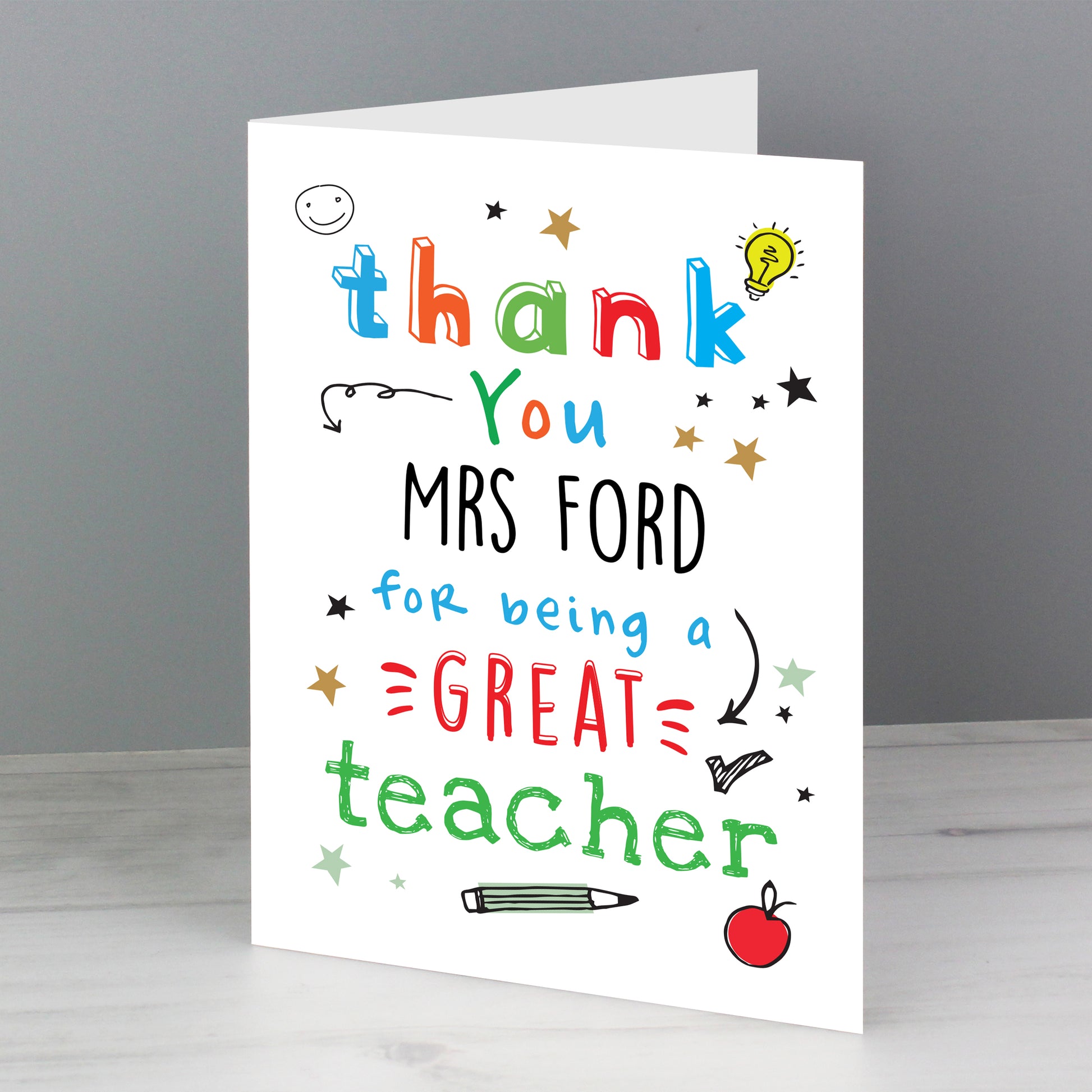 The card has the following fixed wording 'Thank you for being a great teacher'