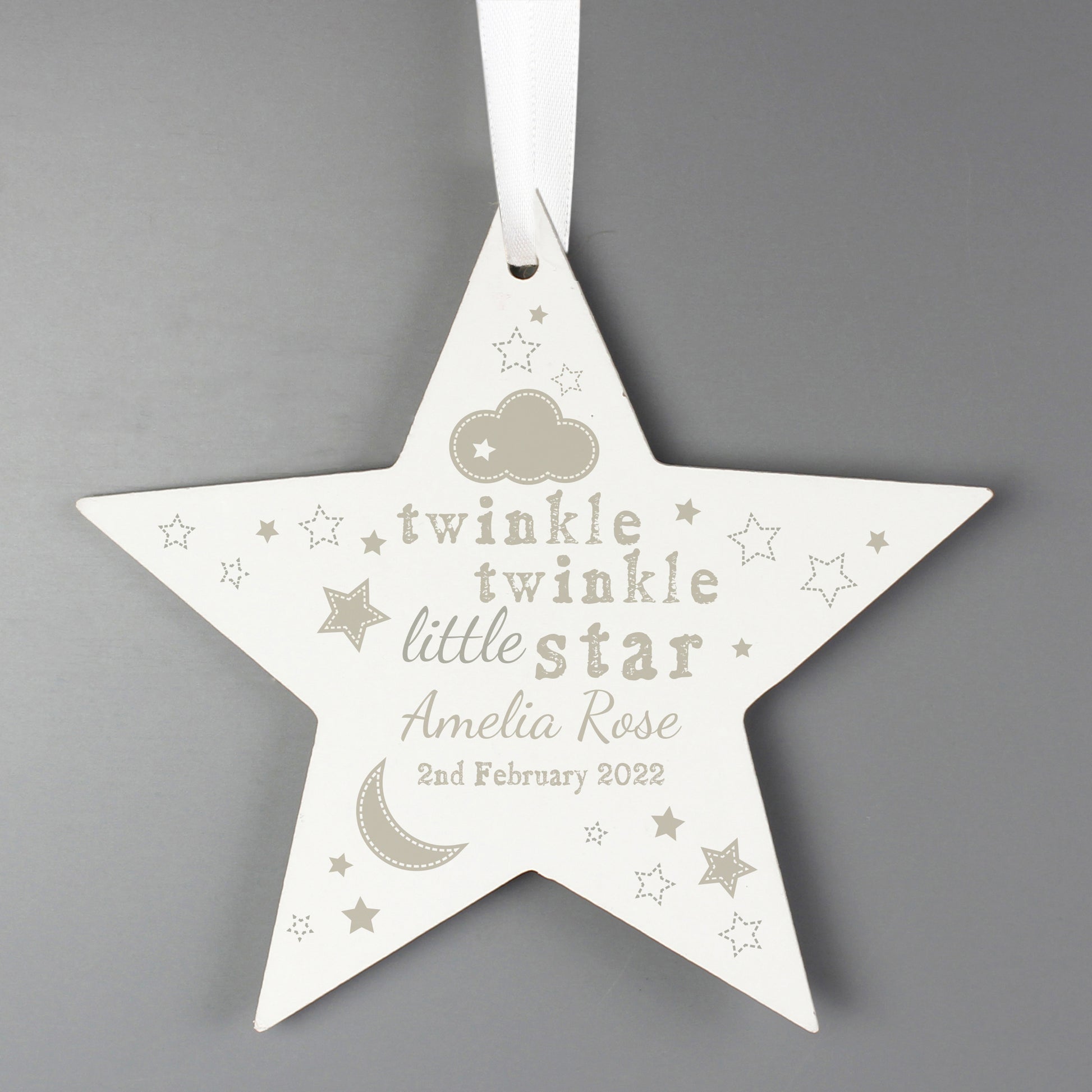 Personalised Twinkle Twinkle Wooden Star Decoration