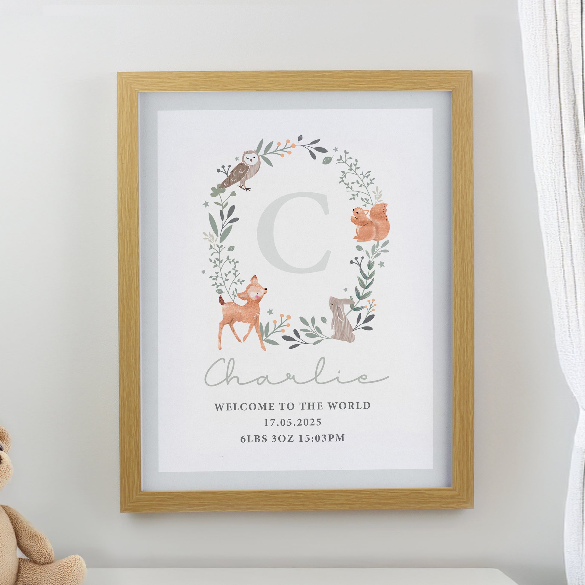 Personalised Woodland Initial Oak Poster Frame